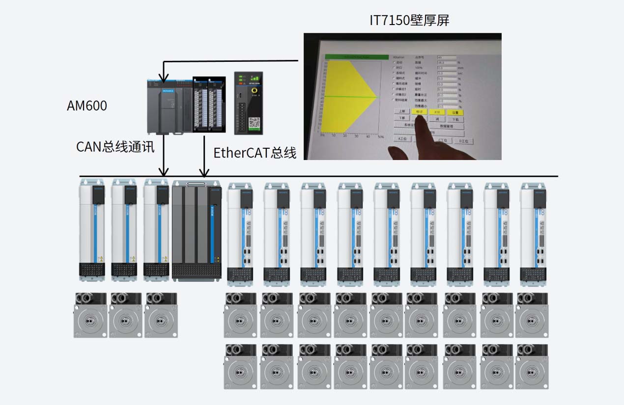 CAN通訊拉通變頻器,ETHERCAT高速總線拉通輔控制軸,全線可控,數(shù)據(jù)可提取