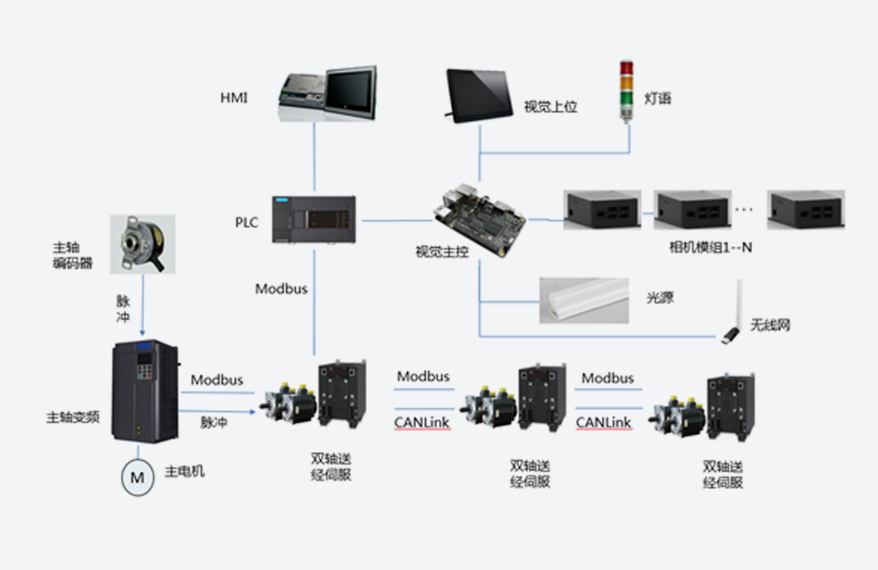 拉幅定型機(jī)方案,采用匯川運(yùn)動(dòng)型PLC,使用虛主軸+電子分頻方案,同步精度高、響應(yīng)快。采用MD810多機(jī)傳動(dòng)變頻器,共直流母線排布,同時(shí)導(dǎo)入新一代同步機(jī)節(jié)能算法,整車節(jié)能10%以上。定型機(jī)物聯(lián)網(wǎng)系統(tǒng),支持遠(yuǎn)程調(diào)試,故障預(yù)診斷;定型機(jī)生產(chǎn)管理系統(tǒng),支持成本核算,智能排序,工藝參數(shù)存儲(chǔ)與下發(fā)